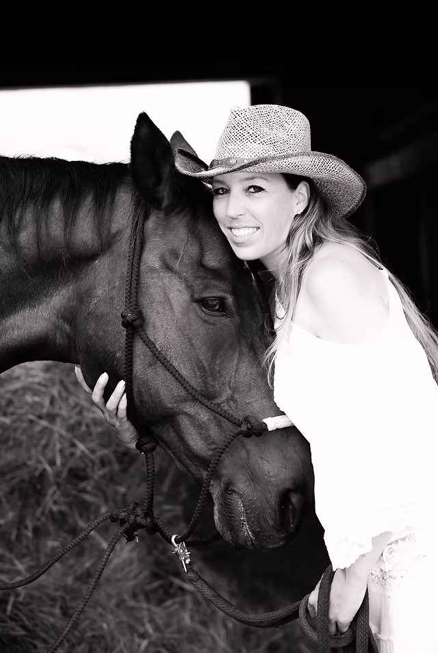 Elle développe un travail empreint de patience et de complicité, où la relation devient le cœur de l’expression équestre.