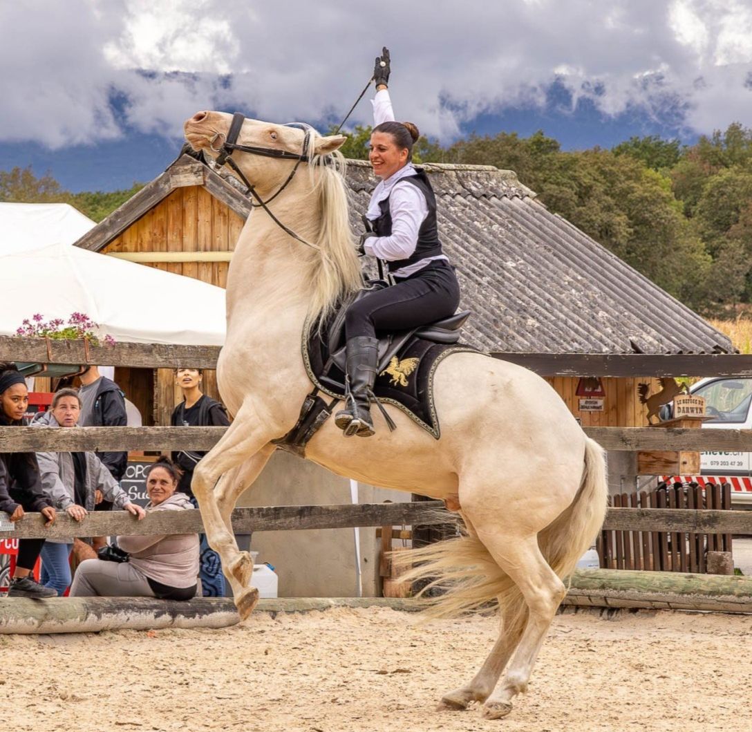 Elle développe une approche authentique de l’art équestre, où la complicité devient le cœur de l’expression scénique.