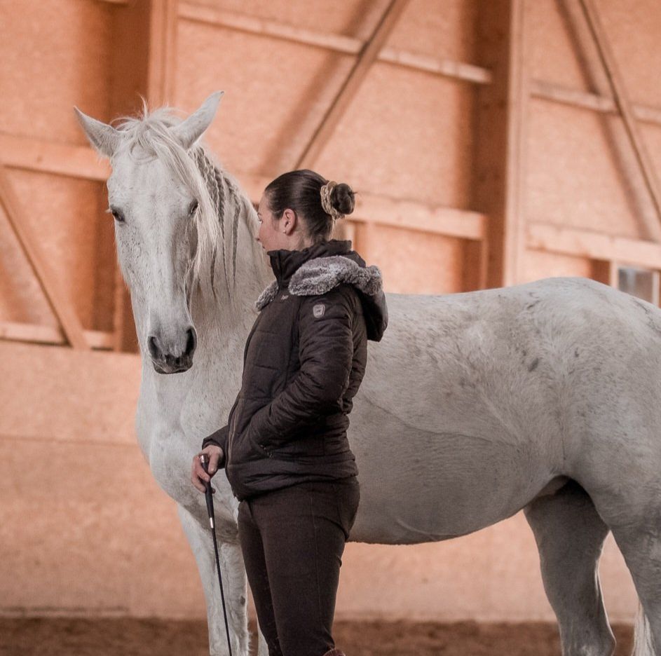 est une cavalière guidée par une approche intuitive et patiente, où la relation avec le cheval se construit dans la confiance et l’écoute.