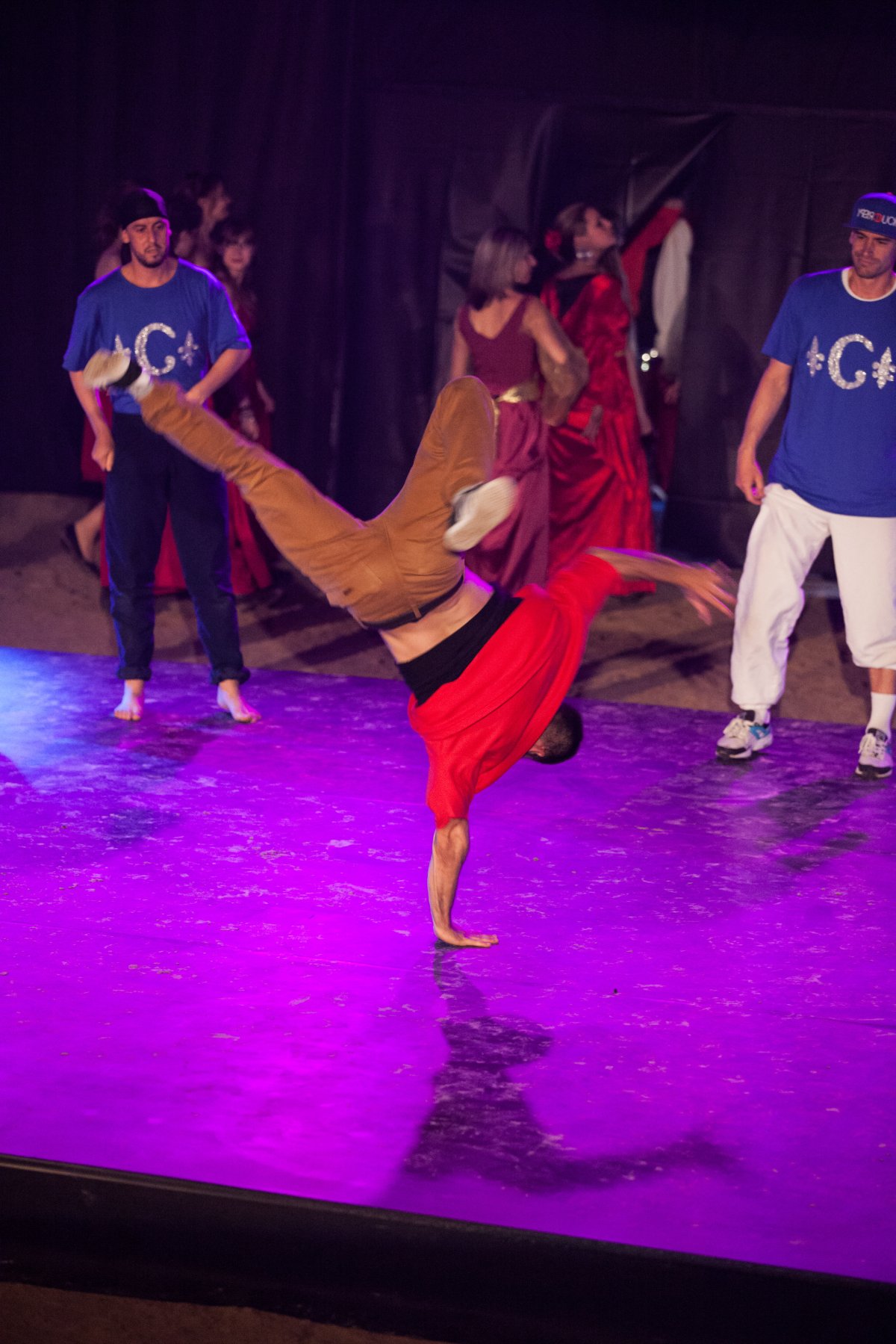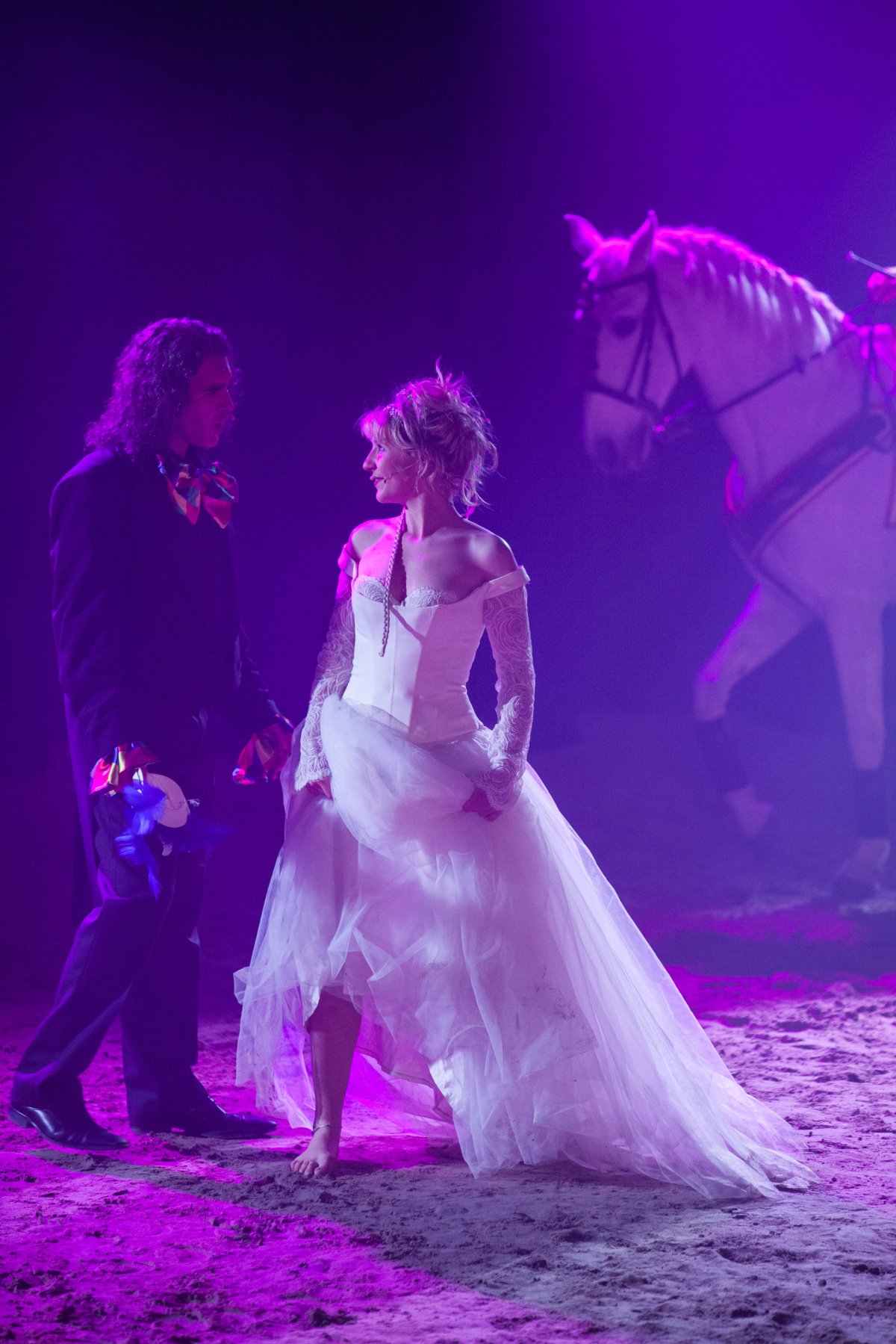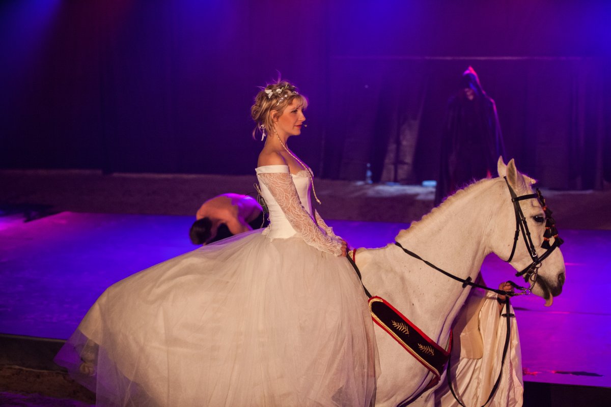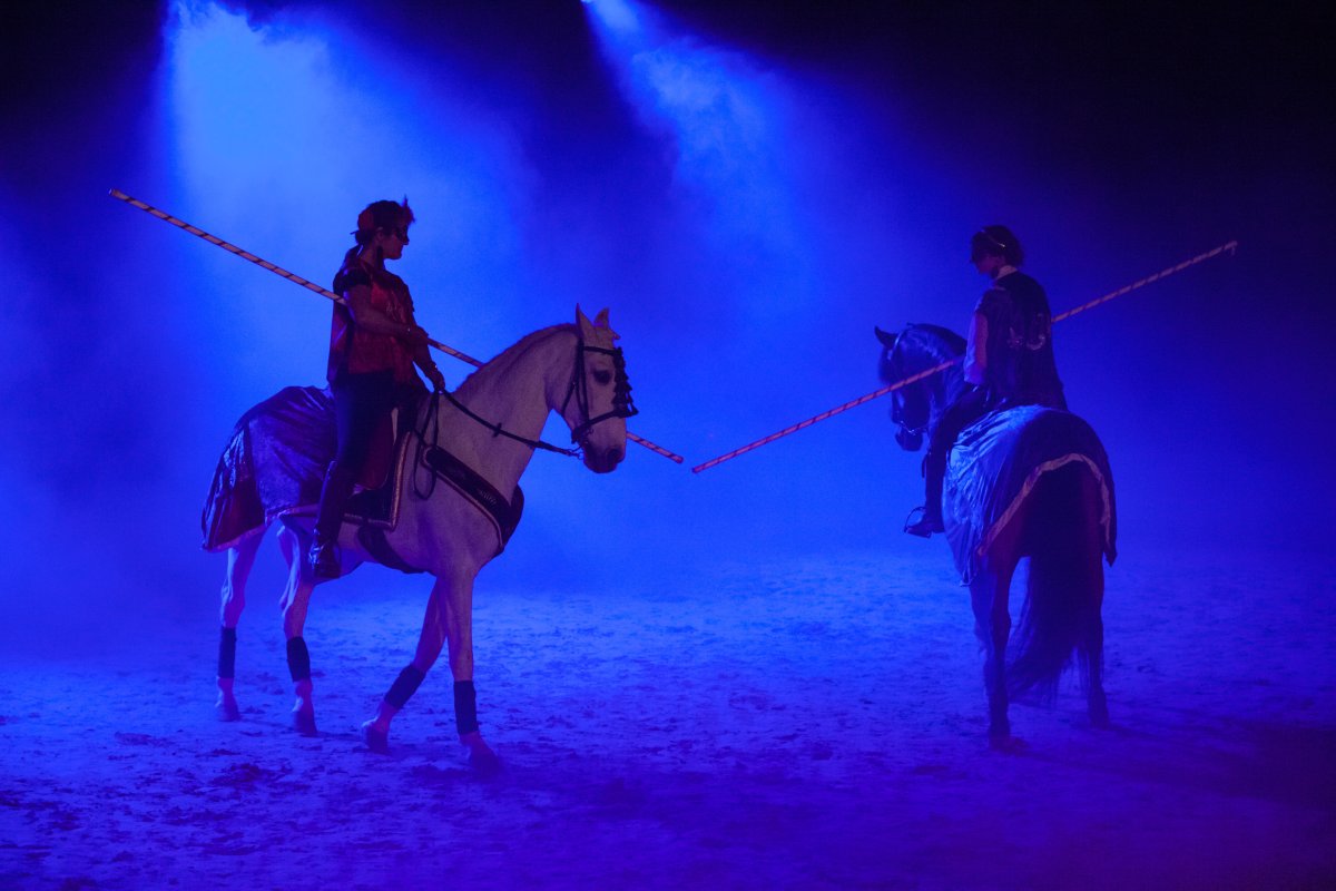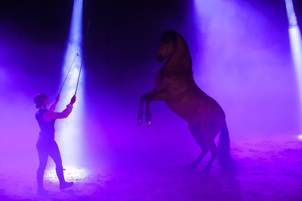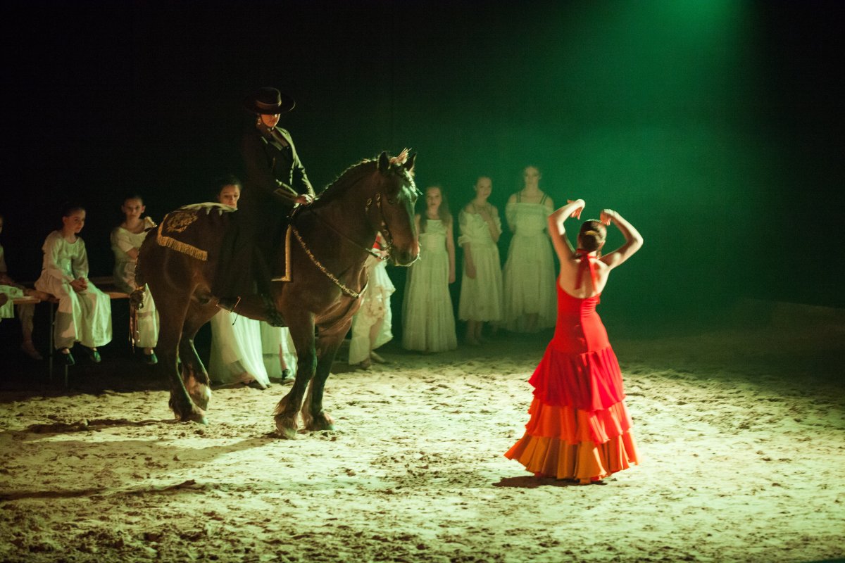 Sur scène, de nombreux artistes participent à la représentation : des danseurs de tous âges, des chanteurs et musiciens professionnels, ainsi que des cavaliers . Cette diversité d’interprètes crée un mélange original entre mouvement, musique et performance animale, renforçant le caractère spectaculaire du show.